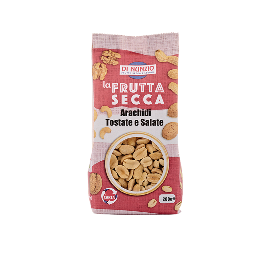 Nonostante si tratti di legumi le arachidi hanno qualità molto simili a quelli della frutta secca a  guscio. Le arachidi Di Nunzio vengono Tostate con un raffreddamento a bassa temperatura che  ne garantisce la croccantezza ed il sapore eccellenti.I loro grassi monoinsaturi aiutano a ridurre il  colesterolo cattivo e ad aumentare quello buono, mentre le loro proteine sono fonti di aminoacidi  di qualità elevata essenziali per la crescita e lo sviluppo.