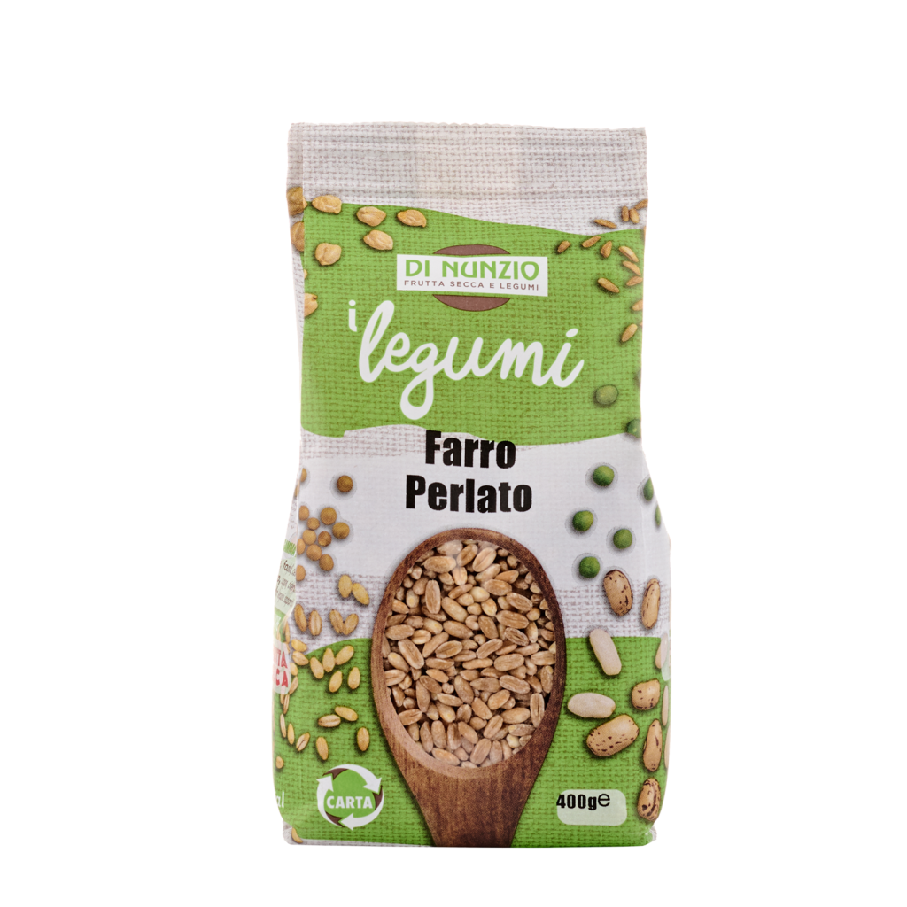 l farro perlato è una varietà di farro con i chicchi di colore dorato scuro. Il chiccho viene prima decorticato, poi subisce un’ ulteriore abrasione che toglie la parte esterna e quindi viene perlato dal colore più chiaro. Questo facilita la cottura ma non toglie nessuna proprietà nutritiva del cereale.Il farro (parliamo del farro di cocco) si differenzia dai frumenti tenero e duro per alcune peculiari caratteristiche legate al maggior contenuto in sali minerali, alla presenza di un più spesso strato aleuronico (tessuto sottostante il pericarpo, ricco di vitamine e proteine funzionali), alla ricchezza in beta-glucani (gomme naturali con preziosa funzione di protezione dell’apparato digerente e di agevolazione della digestione).